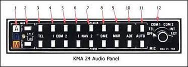Looking at possible solutions, it occured to me to use the “audio panel.” We have an older KMA-24 audio panel as shown below.