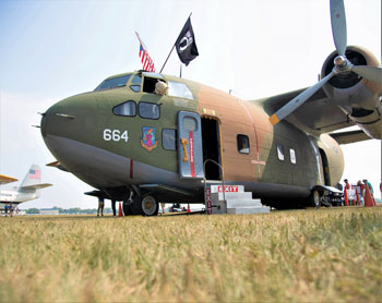 Originally designed by Chase Aircraft in the late 1940s, the C-123 was introduced in the mid-1950s and built by Fairchild. The U.S. Air Force used it primarily as a cargo and military transport aircraft for operation on short and unimproved runways, and it was used exactly for those purposes during the Vietnam War. It also took part in Operation Ranch Hand, defoliating the South Vietnamese jungle. The C-123 attending AirVenture, Thunderpig, is a K-model Provider and is owned and operated by the Air Heritage Museum in Beaver Falls, Pennsylvania.