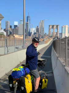 “As I was leaving New York on June 18, the road makes a bend to the left and I could see the Brooklyn Bridge,” he said. “That was when the trip became real.”