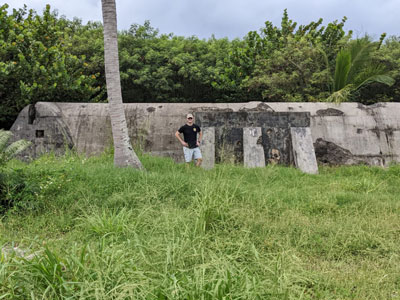 After exiting and securing the airplane, a quick scan of the area surrounding the runways revealed excessive jungle and overgrown vegetation. But during the war from 1944-45, it was packed with hundreds of B-29s, support vehicles, and buildings. The northern half of Tinian included an organized and well-maintained road system named after some of the major thoroughfares of New York City. It also included super-secretive shelters where scientists and engineers assembled the two atomic bombs, Little Boy and Fat Man. Today, anyone visiting Tinian can tour this same area, which is now a national historic landmark and is open to the public. Visitors can even view copies of the original pictures taken of these bombs at the exact same sites where they were loaded into the bellies of the B-29 Superfortresses named Enola Gay and Bockscar. Other sites in this area include the runways, taxiways, original Japanese air raid shelters, and the old Imperial Japanese Air Force headquarters building.