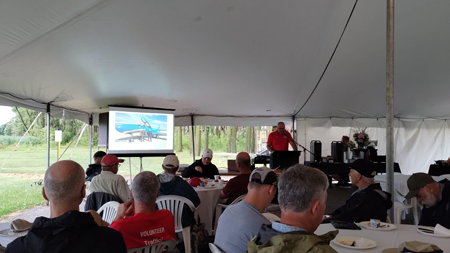 The goal of the campsite was to have Canadians from across Canada get together with a common theme, “Canadian Aviation” and that certainly happened. The Council specifically focussed on having a spot within the campsite, where everyone could get together in the evening and mingle. We set up a horseshoe arrangement of motorhomes and travel trailers with a common grass area in the middle with two picnic tables and many chairs under the awnings of the campers. Sharing common coolers, BBQs, and USB charging stations attracted many of the campers to an evening of eating, drinking and song, yes, we even had a guitar playing with Ian Brown and Murry Manning singing many of the old favourites.