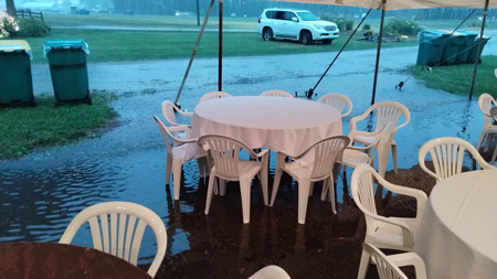 Wednesday morning yielded the Canadian breakfast, held at the Pixie tent over by the nature centre. The night had been very stormy and there was much water to drain off. Many thought the breakfast would be cancelled but, that did not happen.