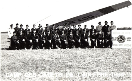I remember my first solo in a Schweitzer 2-33 glider with the Air Cadets like it was yesterday. I’ve never forgotten the thrill of what it was to be finally released from the trainers, to do your own thing with the stick and rudder, and to glide and successfully come to a landing through your own skill — without any commentary and hints from the backseat. It was a moment not to be forgotten when I reached my release altitude of 2,000 feet and was left to my own to decide what to do with my 1,000 feet of “free time” to practice what you wish and then join the pattern for a downwind to the active runway. The glider in question was C-FACY, a sister ship to the glider that we would take our group picture in front of before graduating from the camp.