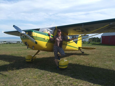 Another unforgettable solo was that of my wife, Sandrine, in the same type of Cessna, except with flaps — the Cessna 140. She had already earned her private pilot license the previous year in a Cessna 172 in St. Hubert, Quebec, and was now ready to give it a try in the 140 where she’d be released to build time at her pace. She knew the basics but next was the tailwheel aircraft. It had been a challenging two years to get her ticket in the fall (owing to aircraft availability, a common struggle of the student pilot) and now it was her chance to prove to herself that she could do it and confidently track the “squirrely” Cessna that doesn’t necessarily want to go where you want it to go. Once a crosswind did develop at our grass airstrip, we had the optimal test conditions. Having it too easy for a first solo isn’t necessarily a good thing. A taildragger takes a concerted effort to keep straight and it just so happened that with the treeline on either side of the runway, the crosswind was going to add enough burbles to make it interesting. By the time I did let her off to practice, the wind had increased to a good 12 knots at 90 degrees. Her first landing resulted in a go-around where she wasn’t quite at ease with how the flare was evolving, but that soon led to a successful one, giving her just the right amount of confidence that she could fly the tailwheel Cessna and build experience. Having an airplane in the yard greatly affords one the opportunity to fly when you want to. I am proud to say that she has flown 200-plus hours since that “first” solo.