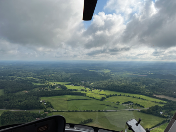 I had flown up to Lexington, Kentucky, earlier in the week in the RV-10 and had closely watched the view from 8,000 feet to look for the best routing in the helicopter. I saw some nice passes across the hills between Atlanta and middle Tennessee that would keep me below 2,500 feet MSL. Helicopters aren’t made to fly high.
