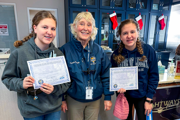 Dorinda Morpeth, EAA 637600, flew her 400th Young Eagle mission on December 30. It was quite the special flight for Dorinda and 13-year-old identical twins Cassia and Callia of Roswell, Georgia. Their parents drove two-and-a-half hours south to Columbus for the flight, the girls’ first. Their father said, “The girls love science, aviation and space…they had a great experience in the air.”