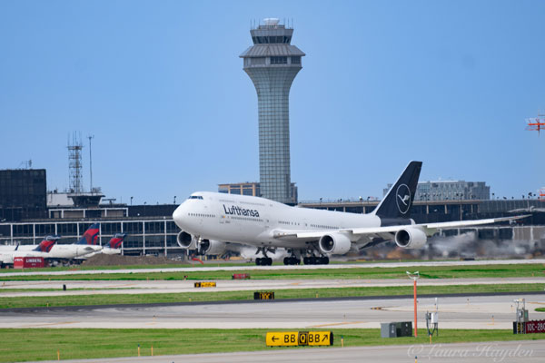 ORD is lucky enough to still have regularly scheduled 747 passenger service, via a daily Lufthansa 747-8. I particularly love it when I can get both the control tower and an arriving or departing aircraft in a shot, which I was thrilled to succeed at capturing on this day in May 2022. Photo by Laura Hayden.