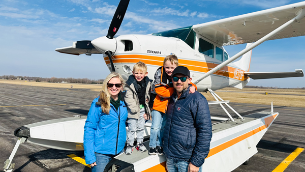 In early March of this year, I took Eli, his mom and dad, and his younger brother, Luke, for an airplane ride. It was their first ride in the 206. My wife and I picked them up at the Buffalo, Minnesota, airport and flew them to the Olivia, Minnesota, airport for lunch. Everyone had a blast. Eli even got a few minutes of stick time.