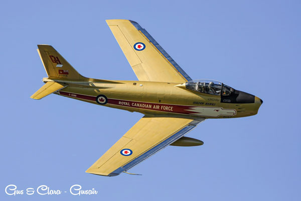 Retired Colonel George Miller, a well-known former manager of the airport, spoke at noon and described his 35-year career in the RCAF. This included flying such classics as the T-33 T-Bird as well as two tours on the F-86. In 1962, he flew one season as the solo in the F-86 as a Golden Hawk.