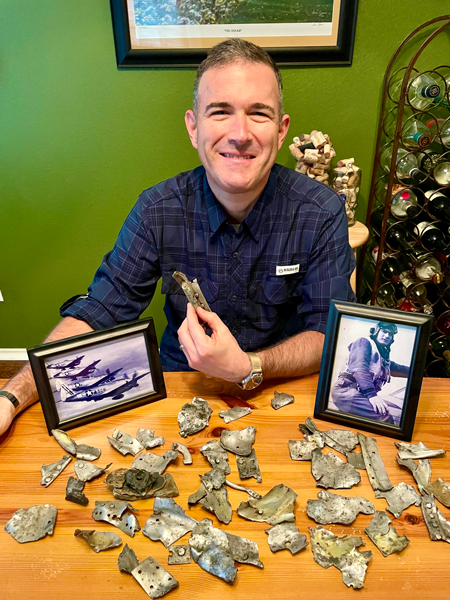 There was something I wasn’t aware of, though — and it was huge: In May 2021, Italian researcher Michele Mari and a team that included a local historian, the town mayor, and members of the organization Air Crash Po located a WWII-era crash site near Valentano. Through their research, they were able to identify the wreckage Michele eventually found there as parts of the P-47 my grandfather jumped out of that day. Over dozens of visits to the property, Michele has recovered many small fragments that have lain under a wheat field for nearly eight decades.