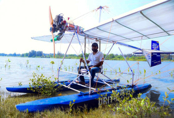 The aircraft was made using aviation-grade aluminium, extruded foam, braided Dacron lines, nylon cloth, fibreglass cloth with epoxy resin, and plywood. The length is 25 feet and the wingspan is 35 feet. The floats were made of composites, and the aircraft is powered by a Simonini Mini Evo 2 33-hp engine. COVID-19 delayed the project, so it wasn’t ready for the test flight until 2021. Pushparaj, despite his lack of experience, decided to perform the first flight himself. With the entire team watching, Pushparaj took off from a waterbody near his house and flew at a height of 15 feet. The entire flight lasted less than a minute. History was made that day, as it was the first microlight seaplane in India. Pushparaj has flown a total of 70 flights in his aircraft. Slow recognition came in the form of coverage in the local television and print media, which led to him receiving accolades from local politicians and social organizations. Pushparaj was also inducted as a special charter member of the Indian EAA chapter.