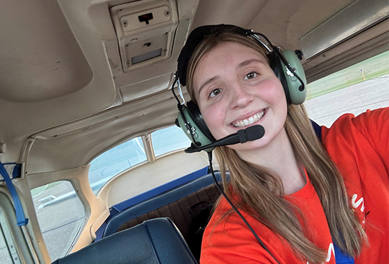 Emily said a highlight of her training was flying solo for the first time with the sunset in the background and her family there to watch. She also said participating in the local EAA events and just being around others with similar interests has been fun and helpful. After high school, Emily is planning on furthering her aviation education at Mankato State University.