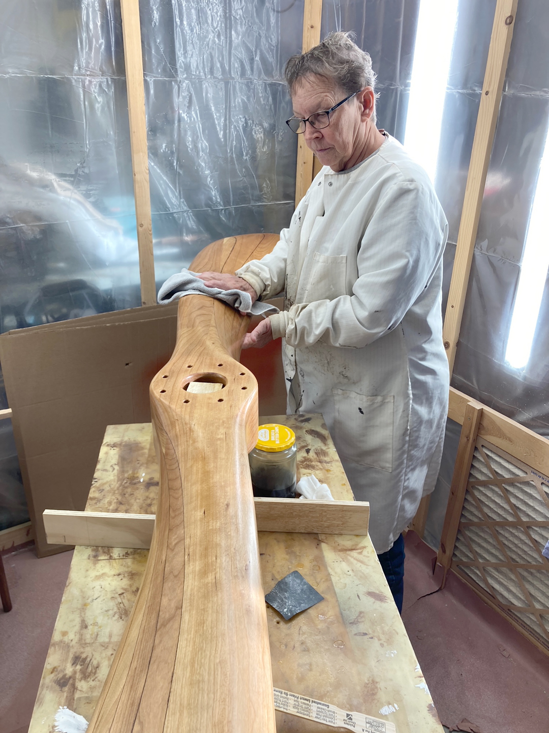 Beth spent a few hours with the wiping technique, applying nine coats on the top surface and eight coats to the bottom surface. As painstaking and slow as it was, Beth did an awesome job.
