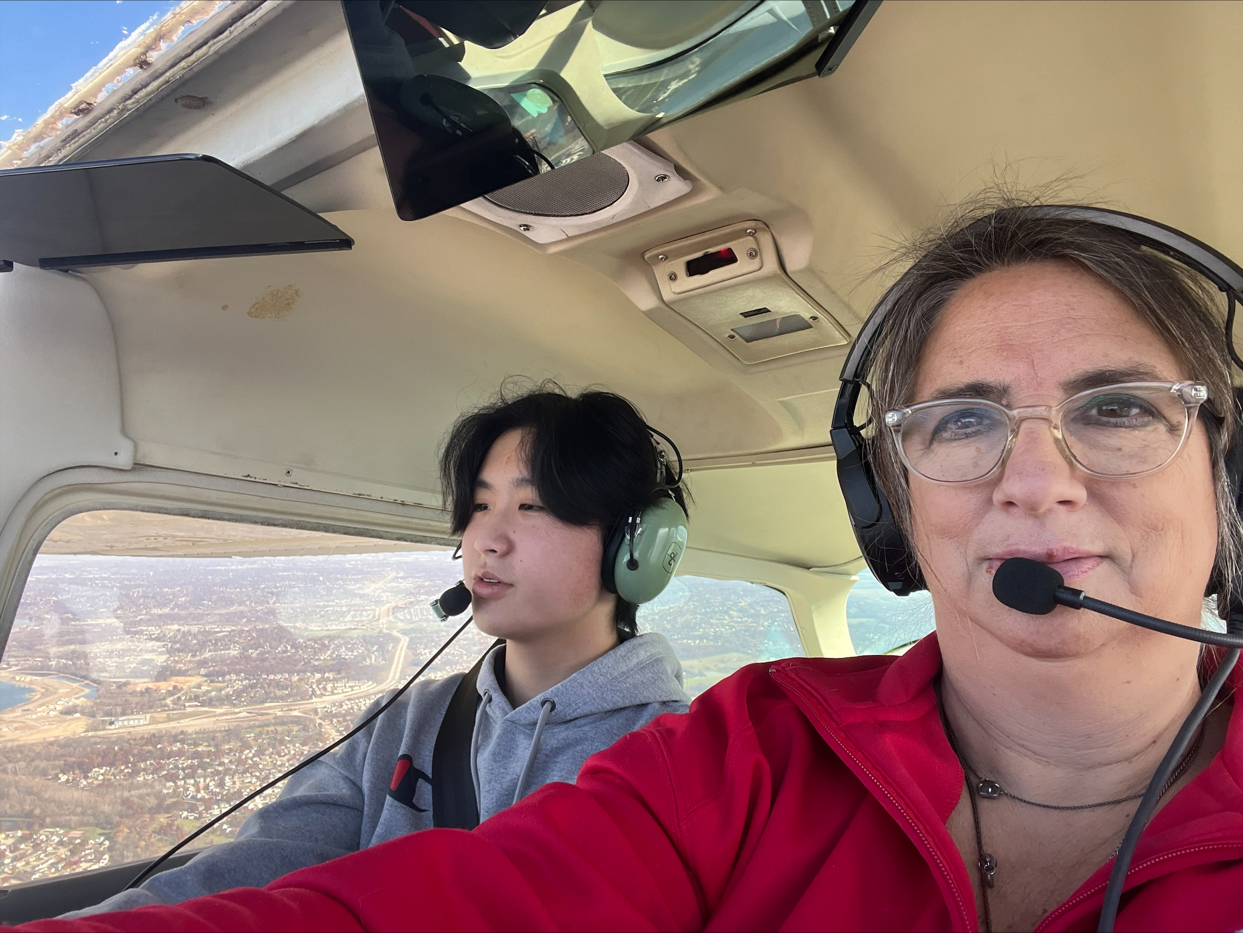EAA Chapter 1675 member and WOH CFO Beth Campbell pilots a Young Eagles flight for a SOAR into STEM student.
