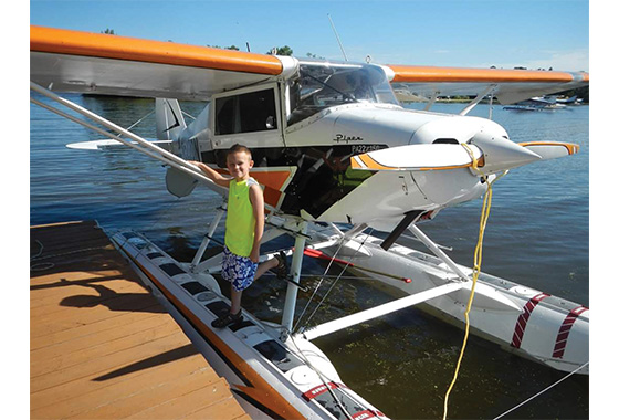 These days, Kyle helps with preconvention setup by preparing the docks and getting boats in the water, and then during the week he serves as a tugboat driver, bringing seaplanes to and from the docks.