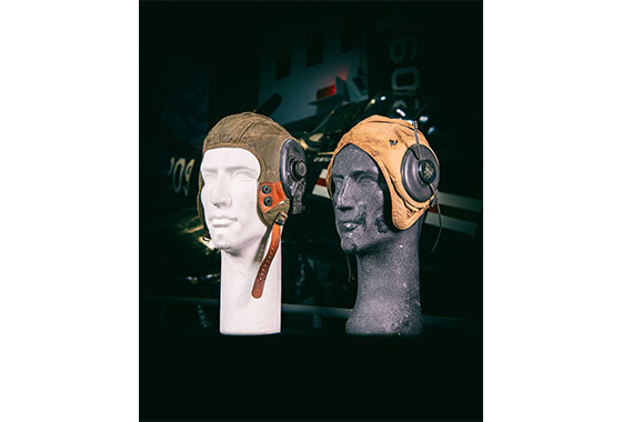 These flight helmets were worn by Wesley Todd, who flew Corsairs as a Marine Corps fighter pilot in the Pacific theater during World War II. He was part of VMF-221 and was stationed on the USS Bunker Hill. Todd fought in both the Battle of Iwo Jima and Okinawa. Todd was flying over Okinawa and providing ground troop support when the USS Bunker Hill was struck and severely damaged by two Japanese kamikaze aircraft. He received two Distinguished Flying Crosses for his military service.
