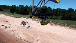 On the ground, we stretched, warmed up, and checked the trike to ensure nothing had fallen off. We managed to refuel, replace the GoPro and Action Cam batteries, and brush off mayflies. The next route was the one I was most excited about, so without wasting any more time, we were off and flying. Farewell, Sky Harbor. Lake Superior shoreline, here we come.