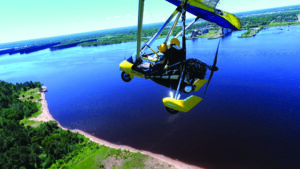 Sky Harbor (KDYT) is an airport situated on a narrow strip of land called Park Point. Lake Superior is to the east, and Duluth Harbor is to the west. Thirty miles from our destination, I tuned into frequency 122.7 for the airport and heard numerous floatplanes taking off and landing in the bay. As we descended to pattern altitude, we set up to land on Runway 32. It felt calm, but turbulence from the tree line and hangars kicked in as the wind came in from the lake on short final. The runway is 2,600 feet long, giving me enough time to float the trike level and set down with a firm thump. Did I mention pilots are tough?