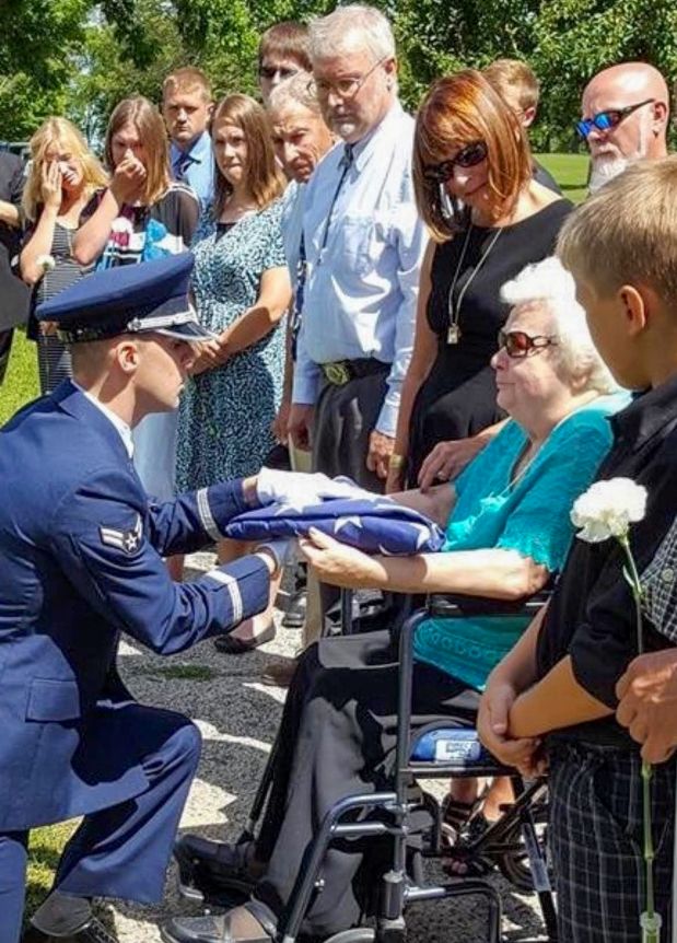 As his casket was being wheeled out of the church, an old, familiar favorite played out of the speakers, “Off We Go Into the Wild Blue Yonder.”