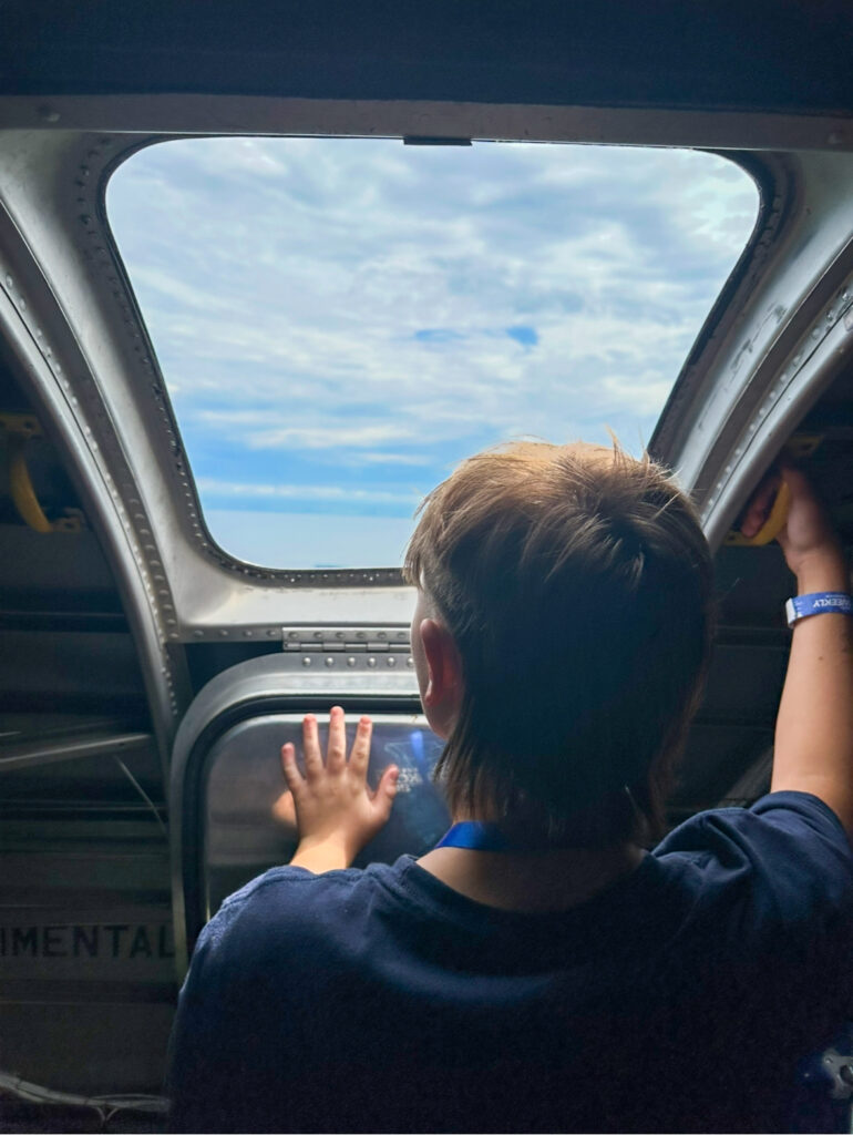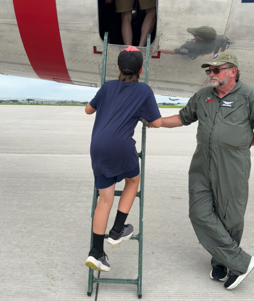 10-year-old Beckett Dovichi’s glee was uncontainable as he leaned his head toward the openwindow in the rear compartment of B-29 Doc. It was July 24, 2025, and we were in the midst of our Doc flight experience, flying a bit more than 200 mph at an altitude of about 1,500 feet. Once we reached altitude, our seatbelts and headsets came off, and we were free to roam from our assigned seats in the gunner section to the rear of the airplane. I imagined his great-grandfather’s (my dad) first time flying on a B-29. I can picture his youthful, good-looking face having a similar reaction as all the components of the flight became a part of himself, especially the distinct and deafening sound of those four engines during takeoff, and the whirring of the propellers. There was no noise-reduction technology in the 1940s. We were also hearing Doc, unfiltered. I can’t help but also imagine how terrifying these same engines must have sounded to those people in the targeted cities.