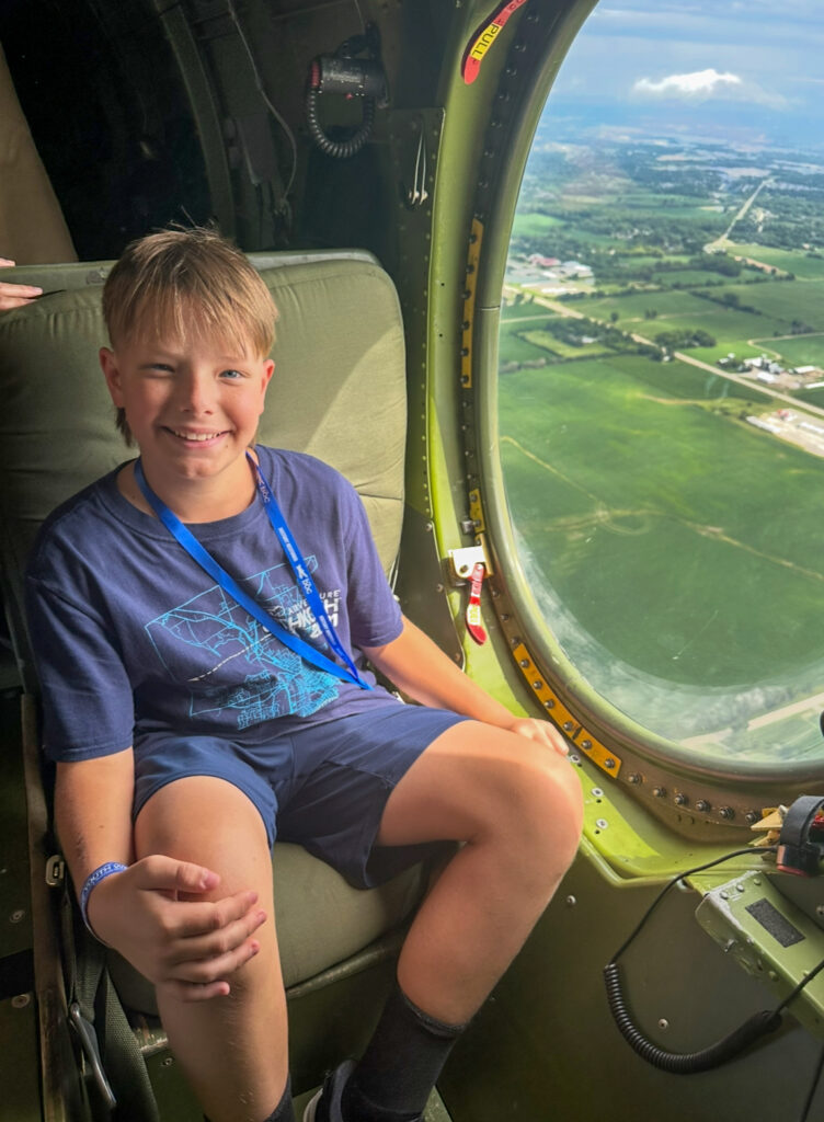 As I was writing this, I got a call from Beckett, and I asked him what stood out the most for him from his Doc flight experience. He replied, “Well, the whole flight but especially that open window and sitting up in the CFC bubble seat,” where his great-grandfather also sat. He also mentioned how noticeably loud it was when we took off the headsets. We were wearing them at the beginning of the flight, so we could hear the B-29 crew communicate with each other. That was very interesting, but it also muffled the sounds. In hindsight I wish we had not worn them during takeoff so we could have heard, fully, what it was like.