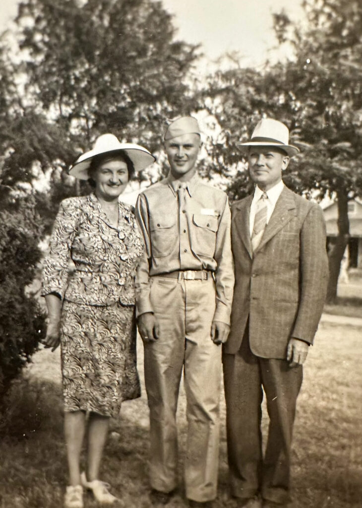 Ralph really wanted to become a fighter pilot, but the need had decreased by this time as the allies were winning the fight in the sky. He started his basic pilot training in Wichita Falls, Texas. From there he trained at Canyon, Texas. While in Texas Ralph found himself in serious trouble. While out on the town with some buddies, and stoked with “liquid courage,” he mouthed-off to a Marine sitting at a nearby table. This Marine was half a foot taller than Ralph and outweighed him by at least 50 pounds, and he was a Marine! This guy got up and was on his way over to take care of this mouthy army/air brat, but his own buddies talked him down when they saw how small Ralph was in comparison. Ralph’s buddies filled him in the next day as Ralph had absolutely no memory of the event. Along with consuming alcohol, Ralph also smoked throughout his active years in the military, eventually quitting both after he met his future wife, Miriam.