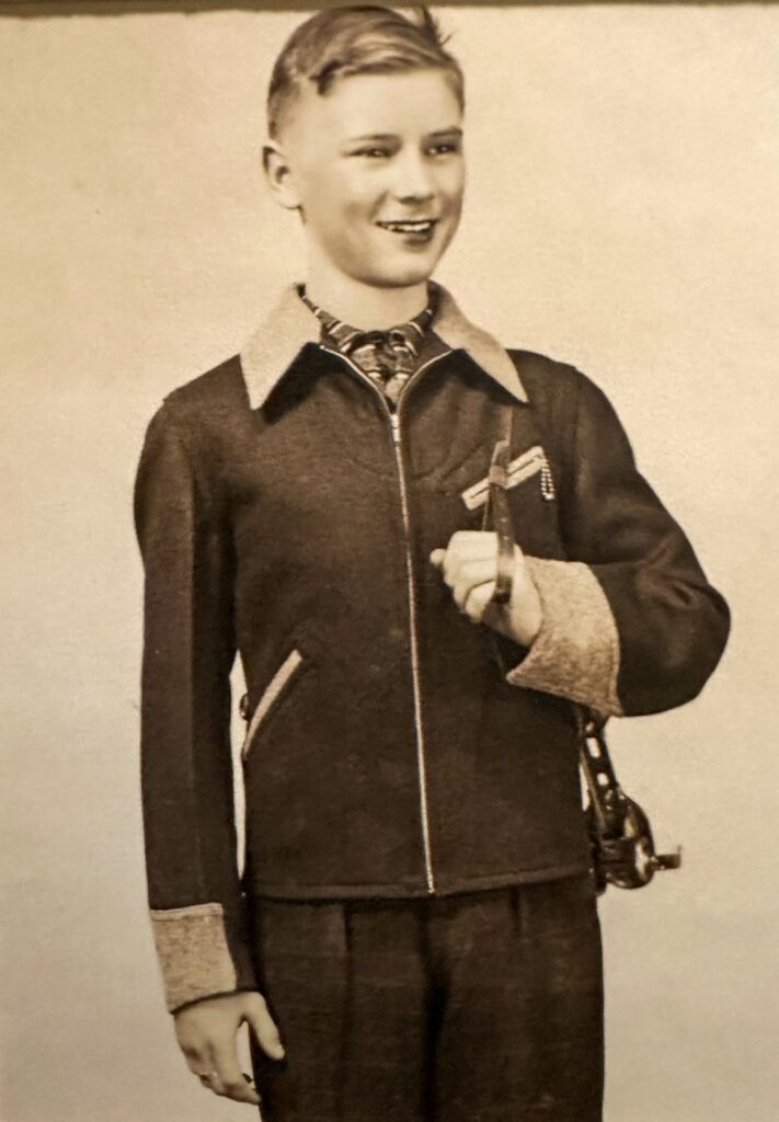 Ralph Edward Smith was born on December 1, 1923, and raised in Milwaukee, Wisconsin. He had wonderful parents who cherished and doted on their only child. Ralph admits that he was somewhat of a mischief maker. He confesses that he was an obstinate and sassy kid, “if someone said something was white, I swore it was black.” He had a lot of time on his hands and was adventurous, as well as inventive, which led him and his neighborhood buddies into various scrapes. Most were harmless fun, but one sad experience occurred when they set up a zip line in their nearby woods, which came apart with one of his buddies taking a fall and hitting his head, resulting in a head injury from which he did not recover. Generally, Ralph’s childhood was happy, and he wanted for little. He was also a good-looking kid and did some modelling for a local publication.