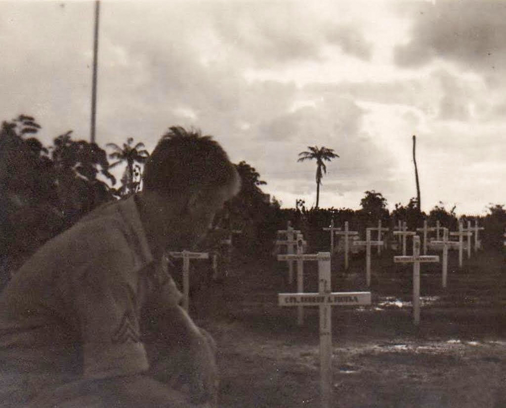 As earlier stated, Ralph was the CFC for his bomber. He spent the remainder of the war on the B-29 in the Pacific, on the island of Saipan. First it should be noted that following intensive naval gunfire and carrier-based aircraft bombing, on June 15, 1944, the U.S. Marines landed on Saipan. For 24 days the Marines met a fierce enemy, and advances were slow as many of the Japanese were hidden in caves and strongly resisted the Americans. Estimates indicate that close to 3,500 Marines and Army personnel were reported as missing or killed. This invasion paved the way for the building of bases and runways for the coming B-29 bombers. Saipan was the first of the Japanese islands to be invaded. “Our war was lost with the loss of Saipan,” one of Emperor Hirohito’s admirals observed. Sadly, after the occupation, the Japanese civilians remaining on Saipan were instructed, by propaganda broadcasts from Tokyo, to take their own lives rather than suffer the humiliation of American occupation. Thousands of Japanese men, women, and children gathered on the northern tip of Saipan near Marpi Point (others at Banzai Cliff) and threw themselves from the towering heights. Desperate pleas to stop, broadcasted by their own soldiers who had surrendered, did not stop the madness. Marines and GIs found hundreds of bodies below! It’s hard to imagine the effect that this sight must have produced, along with the other horrors already experienced by our Marines and GIs. Just weeks after the Marines later invaded Iwo Jima, Ralph had a short layover on the island and he made a point of thanking the Marines still there for their hard-won battles, at both Saipan and Iwo Jima — quite a different encounter with the Marines this time.