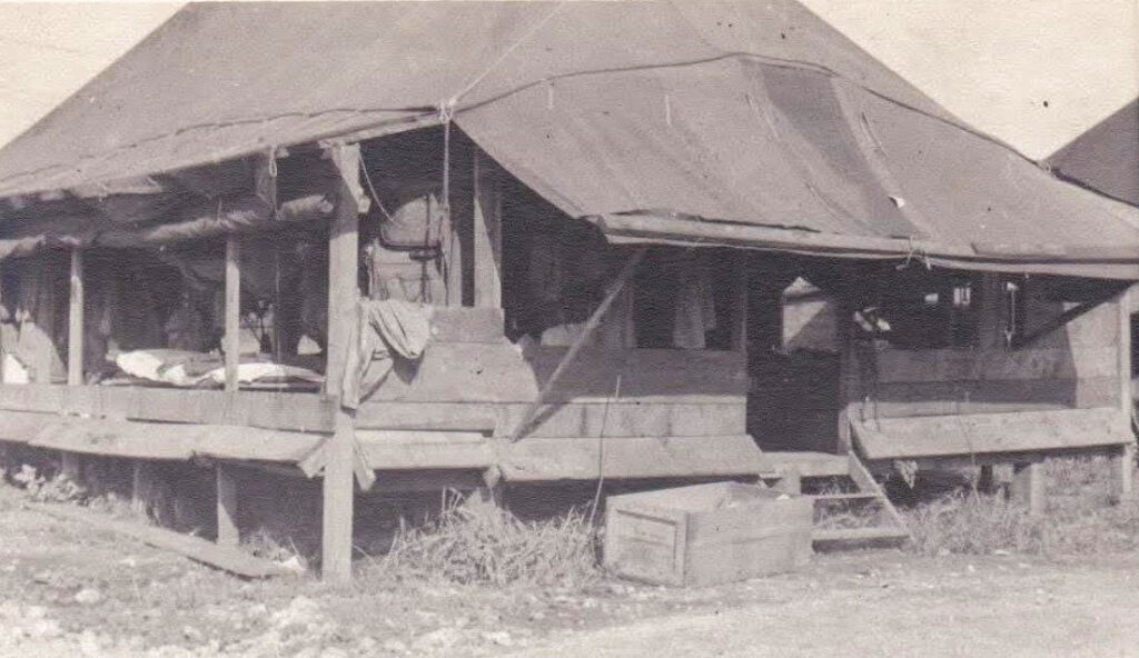 Ralph thought he would be sent to China, so he purchased a map and assigned numbers to the various provinces so that he could write to his parents and tell them “in code” where he was. However, he was instead sent to the Japanese island of Saipan. He and his crew thought the brand-new B-29 they flew to Saipan was going to be their airplane, so they polished it up and gave it the greatest care. They were disappointed when it was replaced with a much-used bomber. In Saipan the bomb squadron lived in a 10-man tent, raised two feet above the ground because of flooding. The men showered using salty sea water. The area was sprayed with DDT to kill mosquitoes, but their tent swarmed with chameleons.