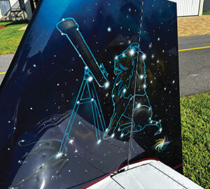 Following successful completion of FAA Phase I flight testing, the Panther was prepared for painting by the famous aviation artist John Stahr. Since retiring from my surgical career, I have been involved with astrophotography using an array of telescopic cameras and equipment. John was able to use several of my actual astrophotographs, which he digitized and created paint templates from. Through an amazing array of painting and airbrush techniques, John was able to accurately capture the cosmos on the airframe. A beautifully furled American flag graces the underbelly. The Panther has become a storyboard completely capturing those elements that are so important to me, namely God, family, and country.