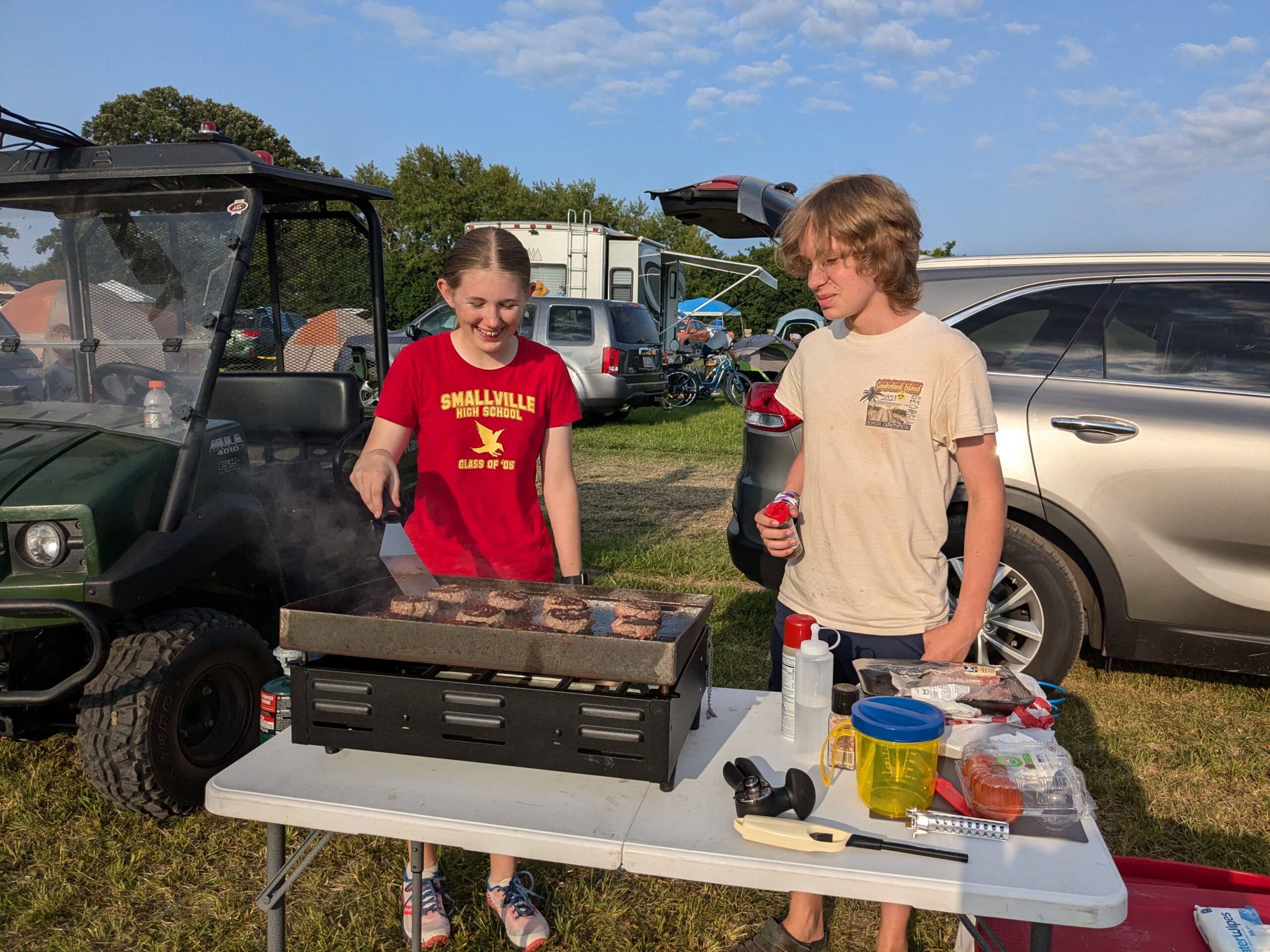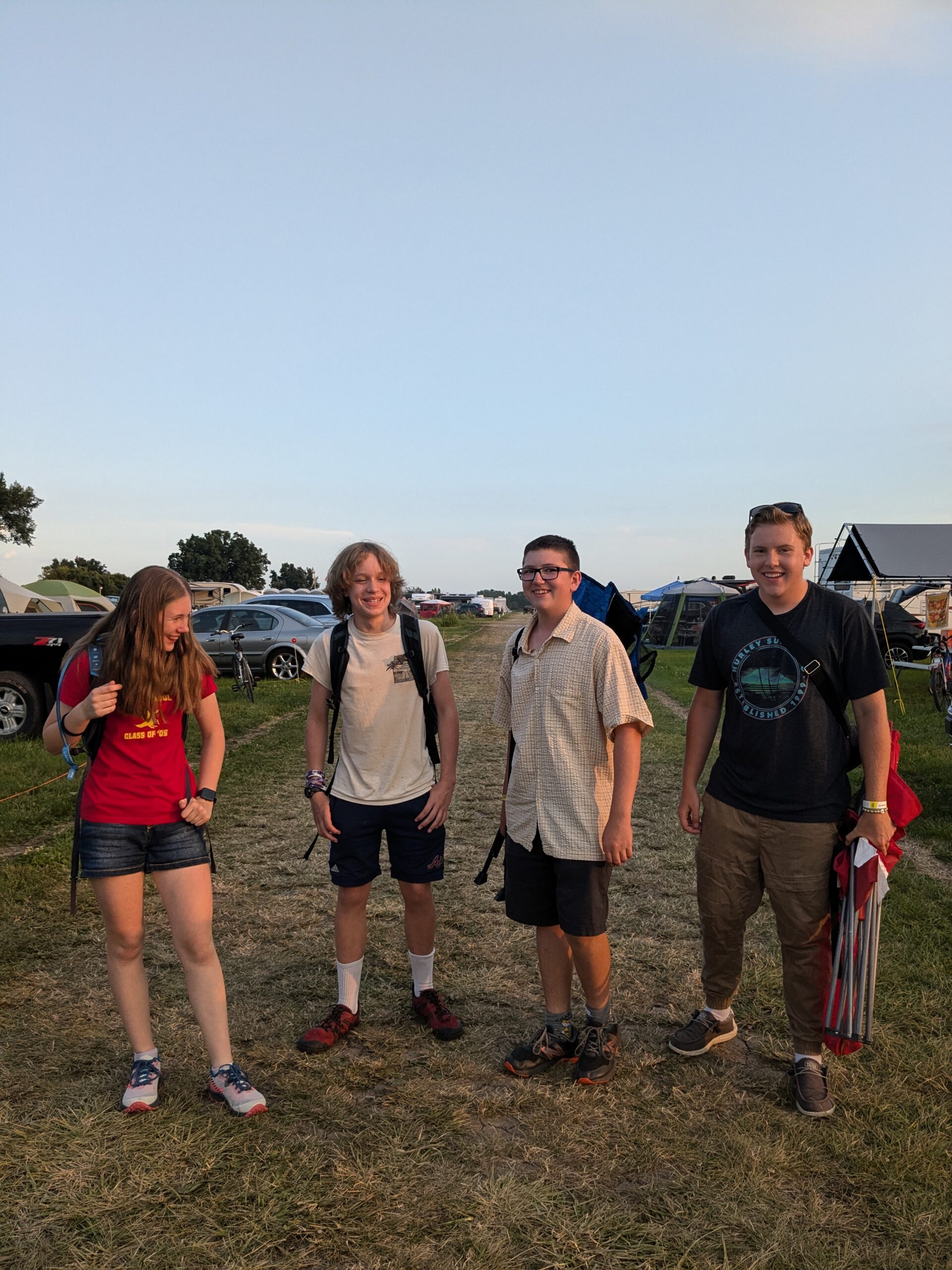 David, Logan, Garrett, and Lily found each other at AirVenture’s Camp Scholler, tucked into folding chairs under the stars, somewhere between the roar of jets and the flicker of a campfire.