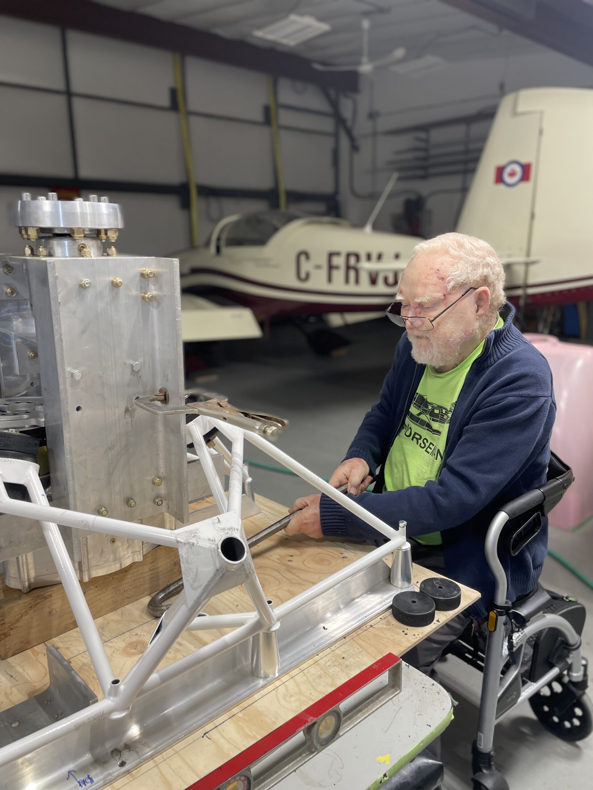 After seeing the propulsion changes in the radio-controlled world with the introduction of lithium polymer batteries and DC motors, his idea was to help general aviation switch gears into an electric age. He dreamed of having an electric-powered Van’s RV-9A. This aircraft build was finished past a point of 50 percent, but my father was starting to depend on others to make it happen as his health declined. Instead of daily trips down to the hangar, he transitioned to weekly visits with the help of friends and family.