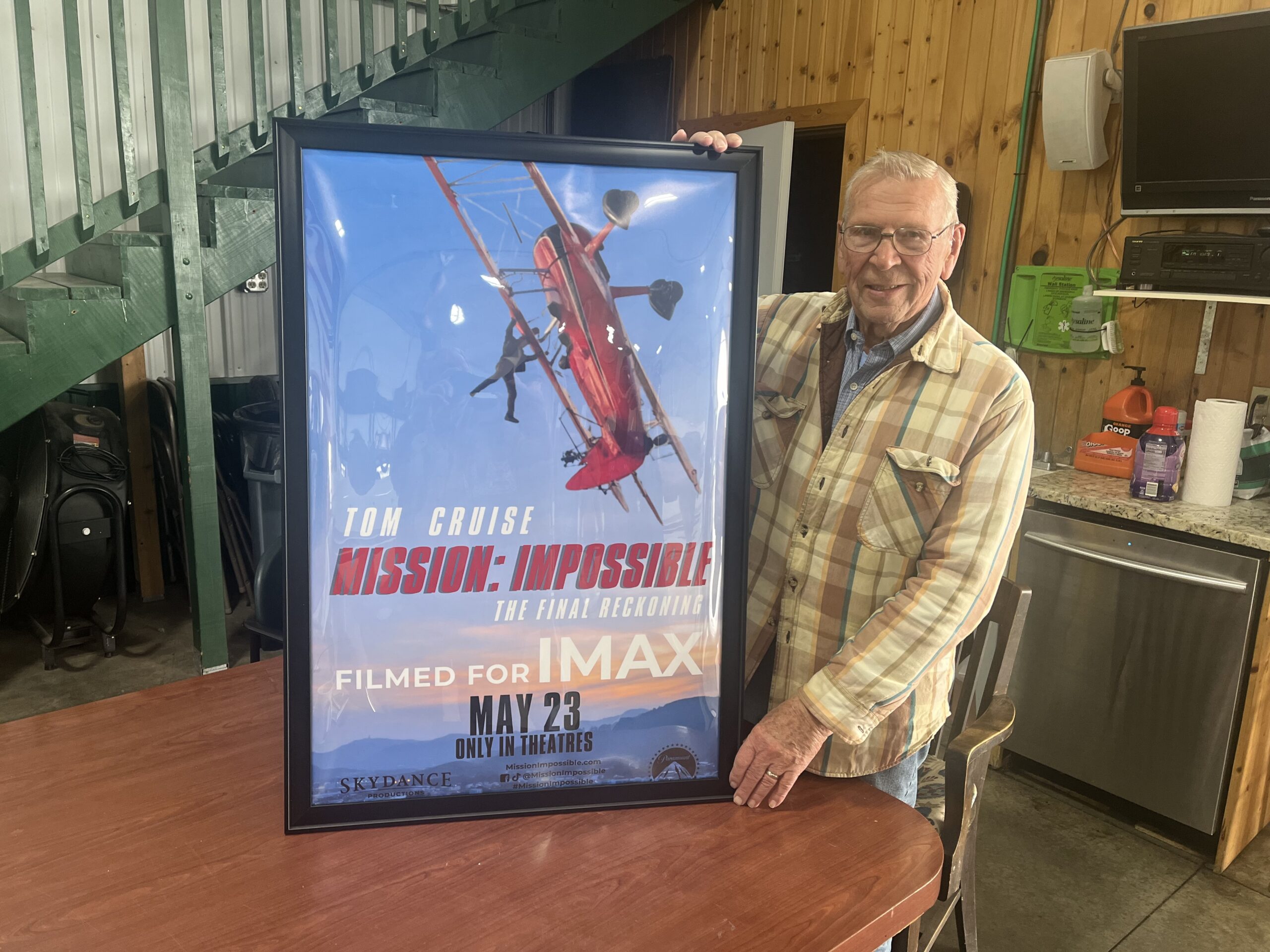 Ray Johnson with Mission Impossible – The Final Reckoning poster with his old Stearman