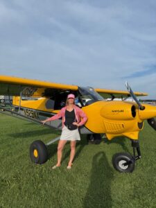 The chance to ferry an NXCub to Oshkosh came through her PR and freelance marketing work. Despite never having flown an aircraft like this solo before, she took the leap. “I had just gotten a checkout flight the day before,” Jackie recalled. “And the next day, I was off. I didn’t even know how to use autopilot!”