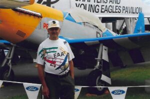 EAA is well past the days of writing bylaws and publications in the personal homes of its founders, yet Ron has been there since day one watching it grow into the international community it is now. He’s even become somewhat of an EAA celebrity when he’s at AirVenture with his baseball cap proudly announcing his two-digit member number (The admissions gate volunteers go wild when he arrives.). He spends his time here soaking it all in with his family and enjoying the sounds and sights of the aircraft, especially the P-51s.