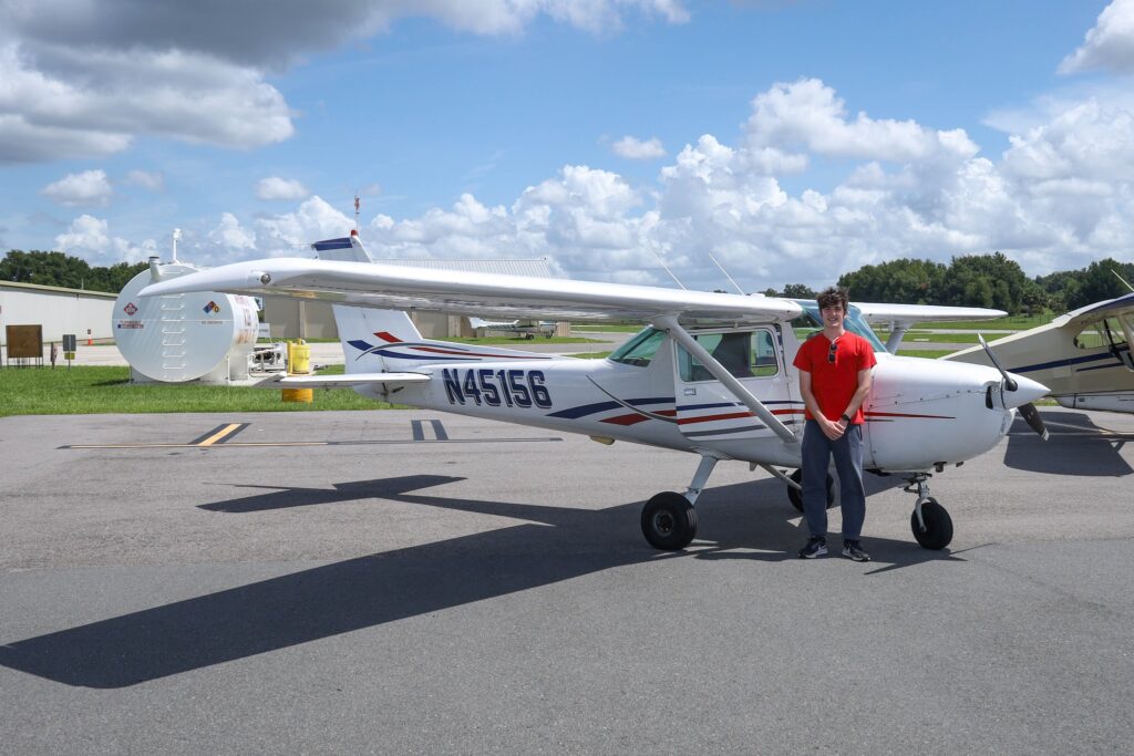 Steven Geist, EAA 1503861, our Ray Aviation scholar, made his first solo flight on July 17 at Umatilla Airport (X23). He flew N45156, a Cessna 150M, and did great. Every pilot remembers their first solo — it’s a big deal — and Steven earned it through all his hard work and training.