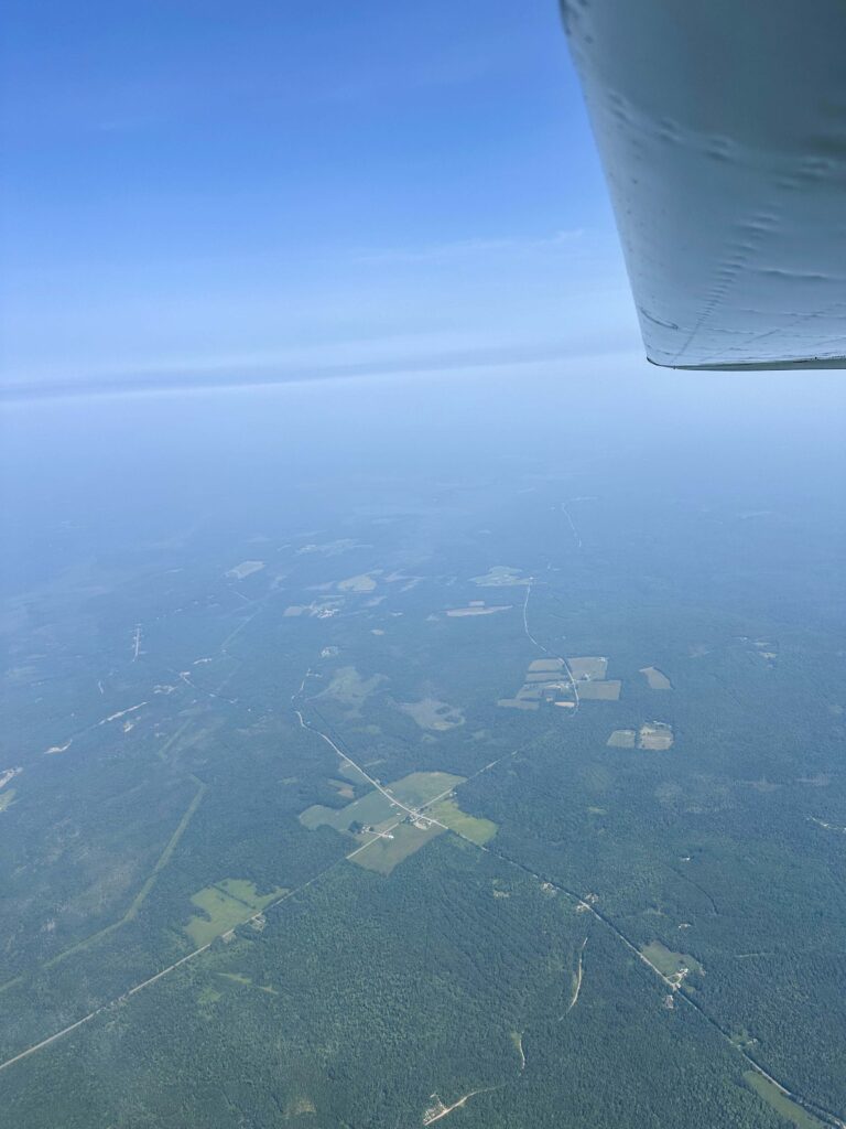 Travelling home, I got to fly the departure leg, Runway 27 heading for 5 miles at 500 feet, then en route course and discretion altitude (3,500 for most of the 10.5 hours due to wildfire smoke haze /10sm viz). Also got to fly the final leg back into Greenwood, but needed to negotiate a fog bank, which was caused by a hot humid day and cold Gulf of Maine water to produce its own IFR predicament — follow the coastline around it, which would add 40 minutes to an already exhausting day, or climb, which we did, to 7,500, where the other side could be seen, faintly. Crossed that 15 minutes of water, and descended into the smoke haze once again, landing into the sun, at home.