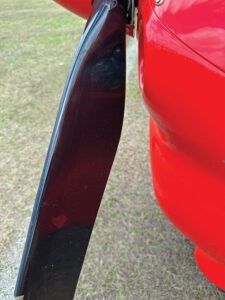 I went to the prop and pointed to the side the pilot sees from the cockpit, which we call the “face.” The nomenclature can be confusing for new pilots. In the outer third of one blade there was a deep cut, probably from a rock hitting it. “You should not fly until this has been inspected and repaired,” I said.