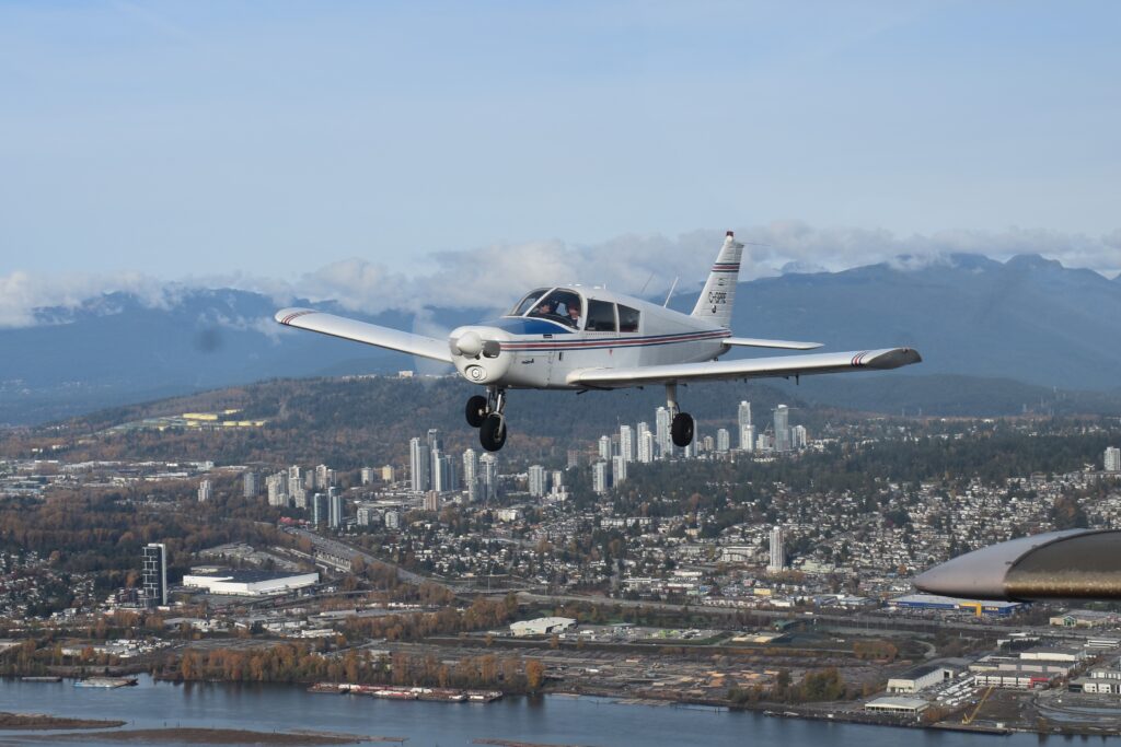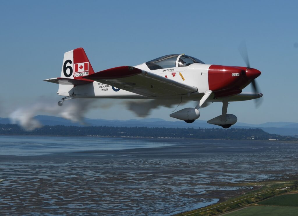 This year, 14 lower mainland municipalities watched as the formation appeared overhead. Timing had to be “spot on” as there were many sites to cover in a very short time. This required the navigation skills of Brodie Morgan, an airline pilot flying right seat as “FO” in the lead aircraft. His skill resulted in each site being reached on time or within 30 seconds of the schedule.