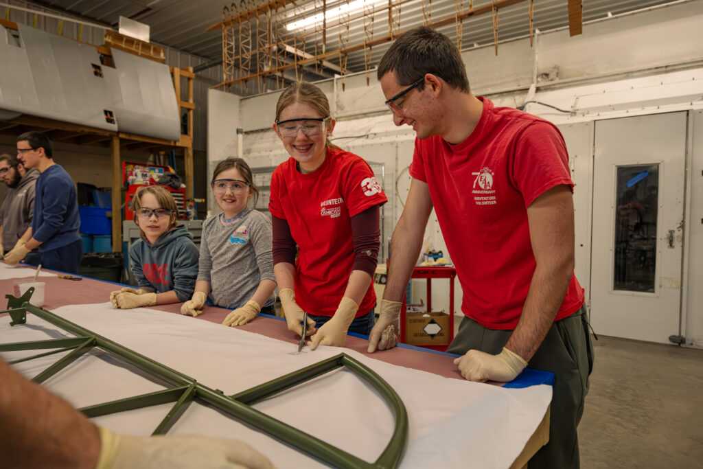 Myself, an A&P school dropout who never made it to flight school; Jacob, EAA 1332663, our 19-year-old Ray Aviation scholar who started his own laser engraving business when he was 15; Nathan, EAA 1316884, a 19-year-old student pilot who has fixed the LBF simulators and computers from his dorm at the University of Wisconsin Platteville more times than he should probably count; Derek, EAA 1316886, 19, our second Ray Aviation scholar who worked to build code for LBF’s scrap built tube laser cutter. Lily, EAA 1462246, 16, who surprised her mom a year ago when she hopped off a PB4Y-2 and told the local TV reporter that she was planning to get her pilot certificate so she could help keep vintage aviation alive. (I heard this first on the recorded broadcast, mind you.)