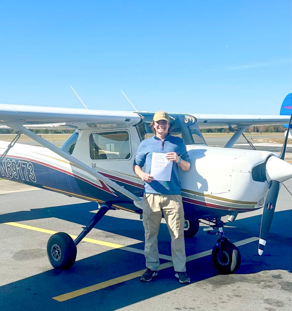 Due to his participation in the chapter and his drive to become a pilot, Luke became our chapter’s Ray Aviation Scholarship recipient for 2023. Luke progressed rapidly in his training, soloed in July 2023, and received his private pilot certificate on January 30, 2024.